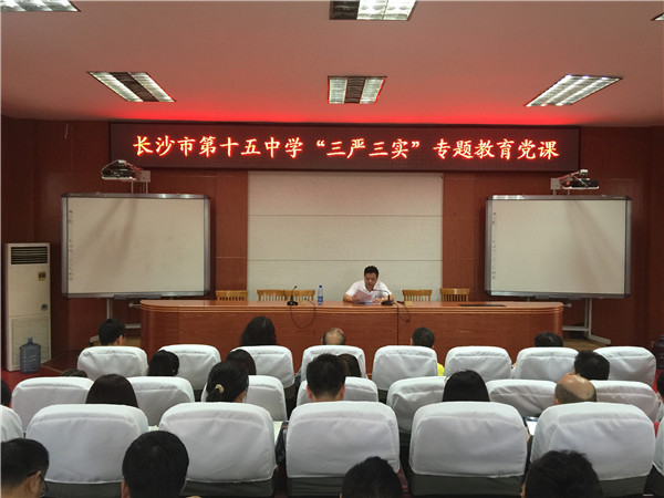 本次大会由校长黄佳主持。他说,“三严三实”专题教育活动是全面落实从严治党要求的重要举措,是党的群众路线实践活动的延展深化,必须要认真对待。之后,刘书记作题为《深入践行“三严三实”,争做“忠诚干净担当”的好干部》的专题党课,他深入浅出地解读了习近平总书记关于“三严三实”(严以修身、严以用权、严以律己,谋事要实、创业要实、做人要实)讲话精神的重要内容和基本要求,并结合党的群众路线教育实践活动中群众提出的若干意见分析了当前我校干部队伍中“不严不实”的具体表现和严重危害,并要求用实际行动落实“三严三实”的实践要求,做“忠诚干净担当”的好干部。他指出, 风清则气正,气正则心齐,心齐则事成。只有真正做到“三严三实”和“忠诚干净担当”,才能将专题教育不断引向深入,内强素质,外树形象。