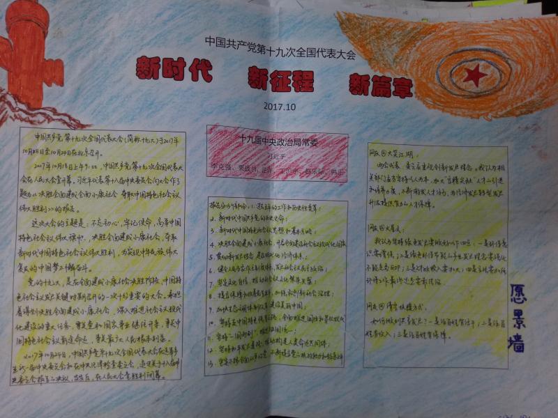 同学们完成的手抄报构思新颖、内容丰富、书写规范、色彩鲜明,最后各班评选出2幅优秀作品,展示在校园大道上,以供全校师生观看学习。在这次手抄报比赛中,同学们重温了党的历史,学习了党的十九大精神,同时也完成了一次精神上的洗礼。