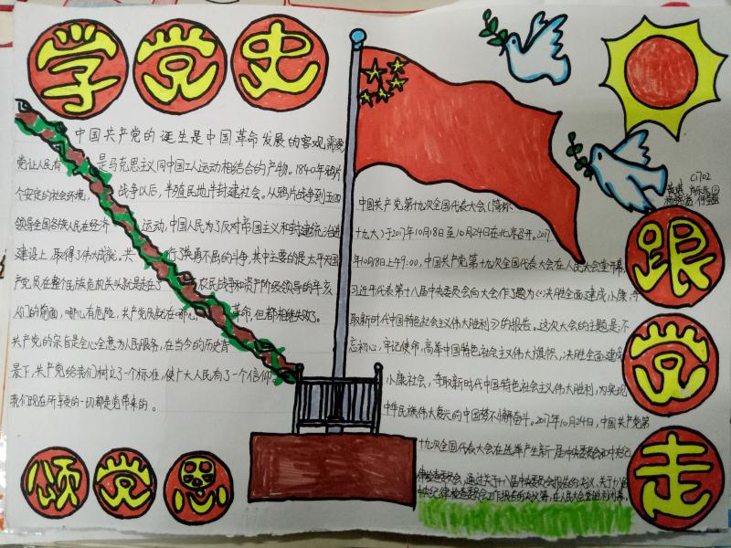 同学们以学习小组为单位,积极参与,分工合作,有的同学负责搜集资料、有的负责版面设计,有的负责文字编辑。在班主任老师的指导下,他们在自己的作品中尽情发挥创意,用缤纷的色彩描绘了党的光辉形象,用感性的文字描述了党的发展历史,用青春的热情谱写了党的赞歌。如C1705班的林莺等同学在手抄报号召同学们“团结奋斗,振兴中华”,C1702班王思怡同学在《党啊,我想对您说》一文中深情写道:“亲爱的党啊,您犹如心灵的翅膀,引我成长,催我奋进!”