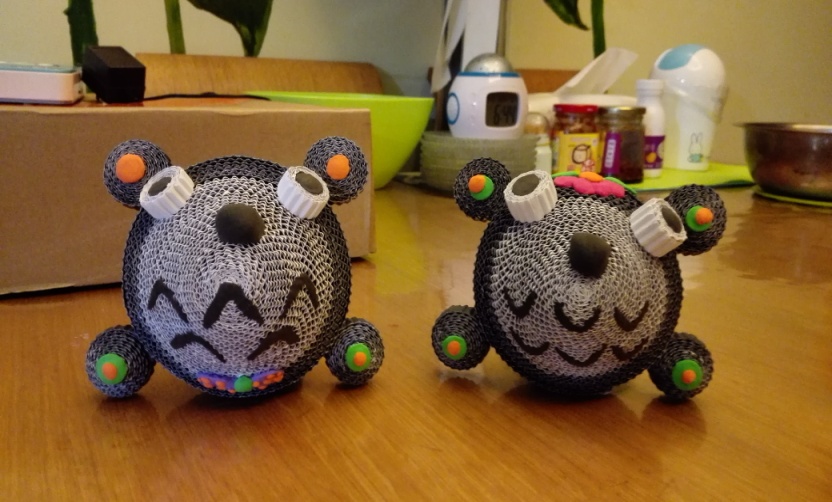 瓦楞纸玩偶的特点 1、造型立体,色彩丰富; 2、材料易见,成本便宜; 3、制作简单,容易出效果; 3、培养动手能力、创造能力、空间思维想象能力; 4、时间可以根据需要控制。