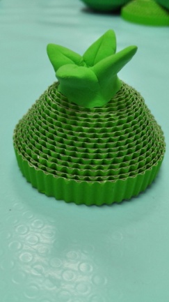 整体组合及装饰——将做好的各部分粘合成整体,再用轻轻泥或卡纸等材料根据设计给玩偶进行整体装饰,放置干透即可。