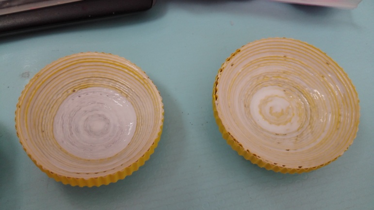 涂胶——用小刷子沾乳白胶将半圆凹处均匀刷满薄薄一层胶,等干了就会变硬,便于塑形。