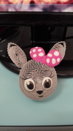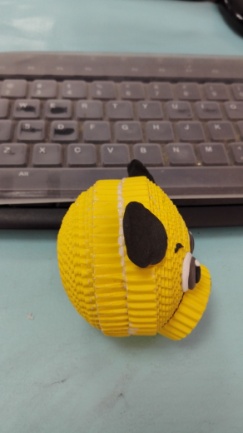 装饰——静待几小时,胶干透后,在玩偶各部位用轻轻泥或卡纸等装饰。 注意:装饰时先把要装饰的面装饰好再组合成立体形状,如果组合成型再装饰细节部位,容易变形。