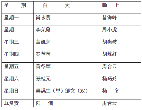 2017年上学期第5周工作安排 来源: 发布时间:2017-03-13 17:35:00 浏览次数: 次 【字体:小 大】 第5周工作安排:3月13日星期一:上午教研组长会;下午年级组长会、班主任会3月14日星期二:下午第八节课支部组织生活会及党员民主评议3月15日星期三:全校磨课;下午教研活动3月16日星期四: 下午教研活动;初三百日誓师大会3月17日星期五: 上 课3月18日星期六: 休 息3月19日星期日: 休 息 行政值日: 总值日:黄 佳 分享到: 【打印正文】