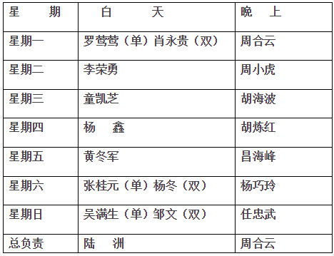 2016年下学期第10周工作安排 来源: 发布时间:2016-11-08 17:23:00 浏览次数: 次 【字体:小 大】 第10周工作安排:10月31日星期一:上午期中教学大检查;下午班主任会11月1日星期二:下午教职工大会11月2日星期三:下午教研活动11月3日星期四:下午教研活动11月4日星期五:上 课11月5日星期六:教师资格证考试11月6日星期日:休 息行政值日: 总值日:黄 佳 分享到: 【打印正文】