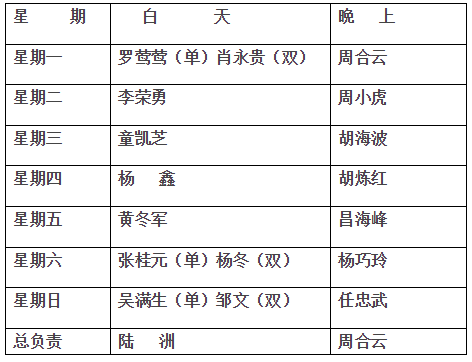 2016年下学期第13周工作安排 来源: 发布时间:2016-11-23 17:26:00 浏览次数: 次 【字体:小 大】 第13周工作安排:11月21日星期一:休 息11月22日星期二:上 课11月23日星期三:下午教研活动11月24日星期四:下午教研活动11月25日星期五:上 课11月26日星期六:休 息11月27日星期日:休 息 行政值日: 总值日:黄 佳 分享到: 【打印正文】