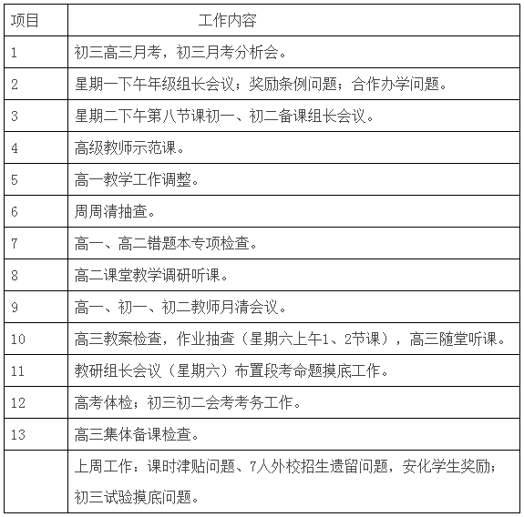 教务处第六周工作安排