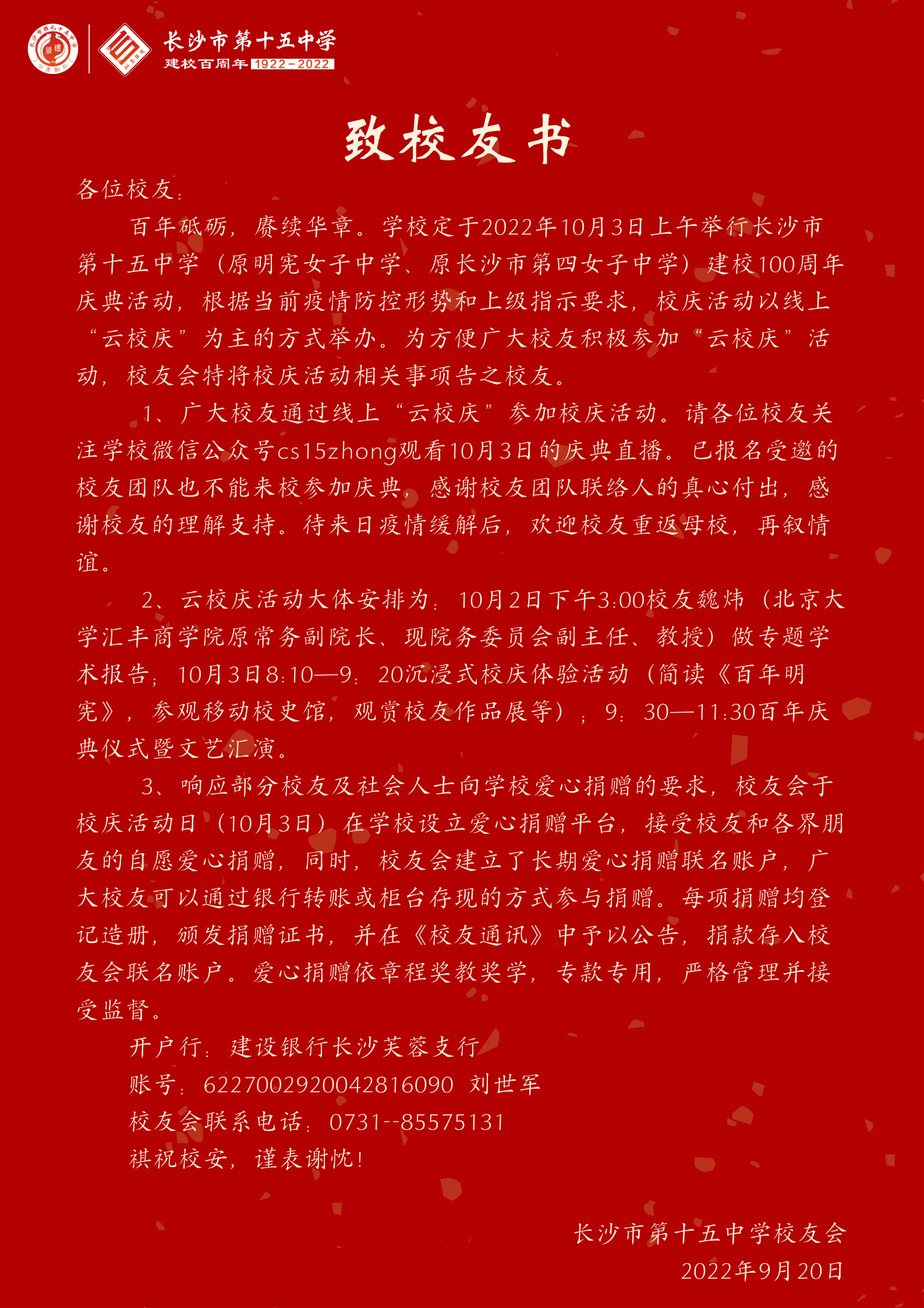 6163银河百年校庆公告(第四号)