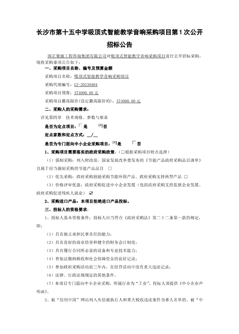 6163银河吸顶式智能教学音响采购项目第1次公开招标公告