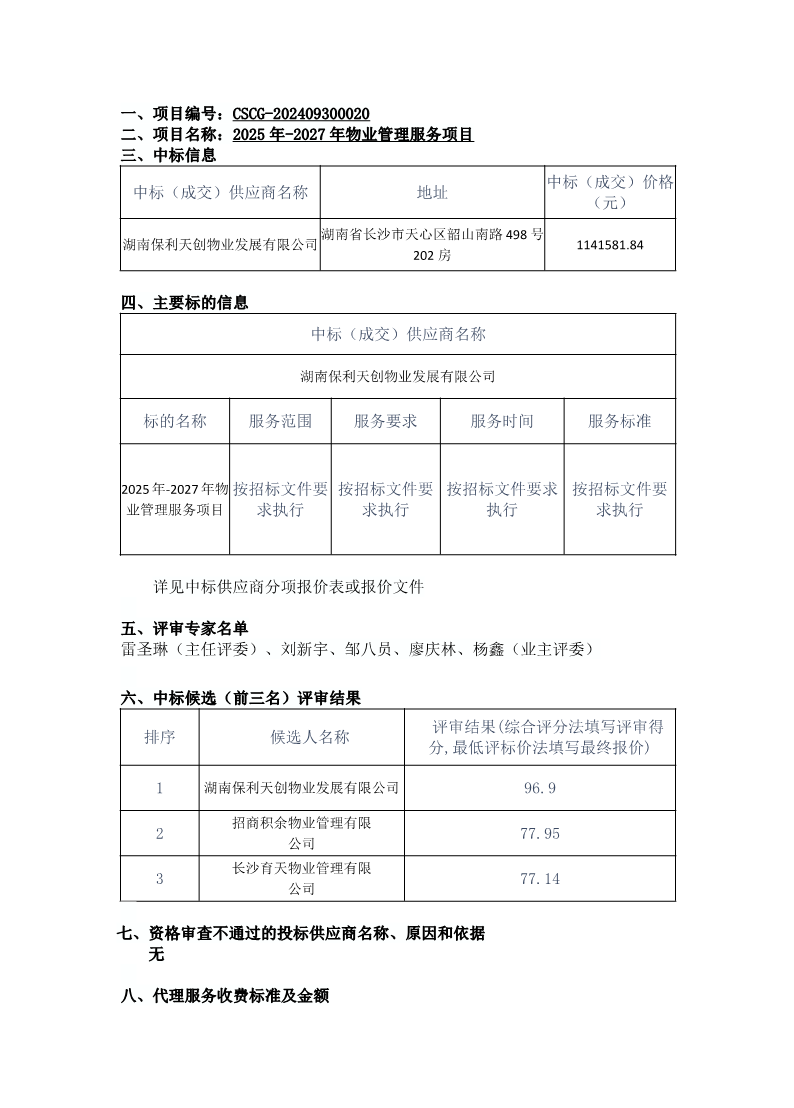 2025年-2027年物业管理服务项目结果公告