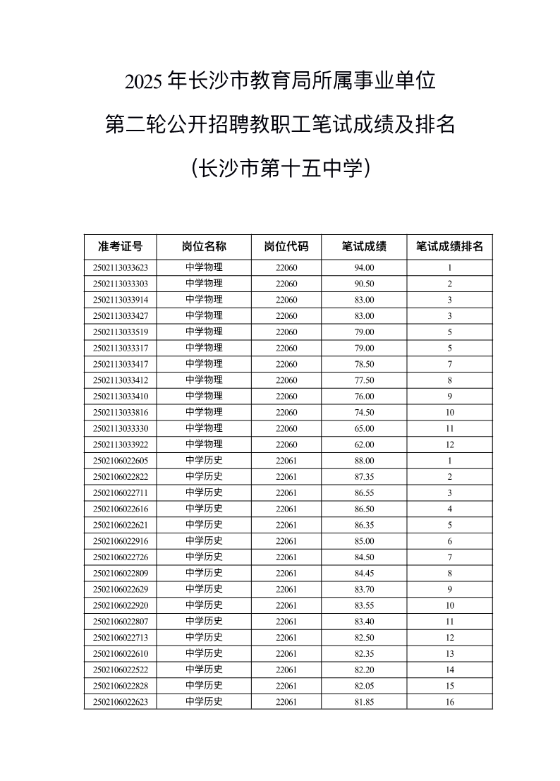 2025年长沙市教育局所属事业单位 第二轮公开招聘教职工笔试成绩及排名