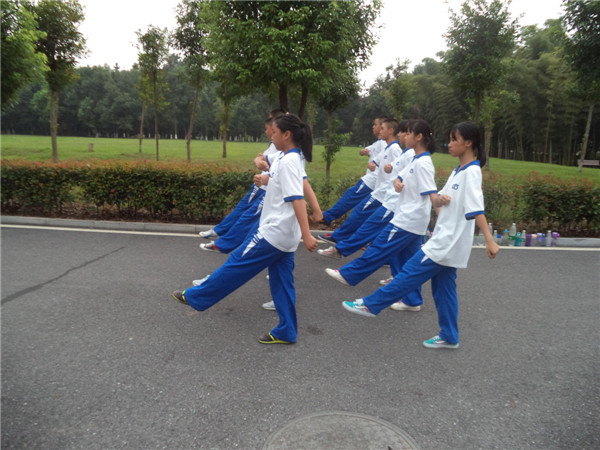 在军训中,最难熬又考验意志的无疑就是踢正步了。踢正步的要诀就是:“左臂曲成拳,弯在身前;右臂笔直向后摆三十度;右腿向前,脚掌面和地面平行;身体前倾,重心转移,上身保持纹丝不动,换手,换腿”。只见教官们掷地有声的口令在训练场上回荡,而这些都让高温天气下的新生们叫苦不迭。有人开始和耳边的同学窃窃私语,有人吐了吐舌头,有人松了松动作,还有些人东张西望。却换来教官的严厉:“动什么动,让你动了么?”跟着教官们的口令,新生们打起精神在烈日之下一遍又一遍的练习,有些学生支撑不住啦,有腿脚练到酸痛甚至抽筋的,有因高强度训练导致低血糖头晕……,但这些困难他们靠自己的意志一一克服了,因为他们坚信来这里是磨练意志,锻造精神的。班主任老师也与学生时刻在一起,紧随训练队伍,密切关注每一个学生,悉心关爱每一个学生,尤其是那些身体不适的学生是老师们每天追踪的重点对象,老师的关心和爱护给学生们带来了极大的安慰和鼓励。班主任的关心,同学之间的帮助,让军训变得越来越有意义。