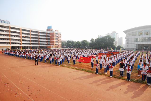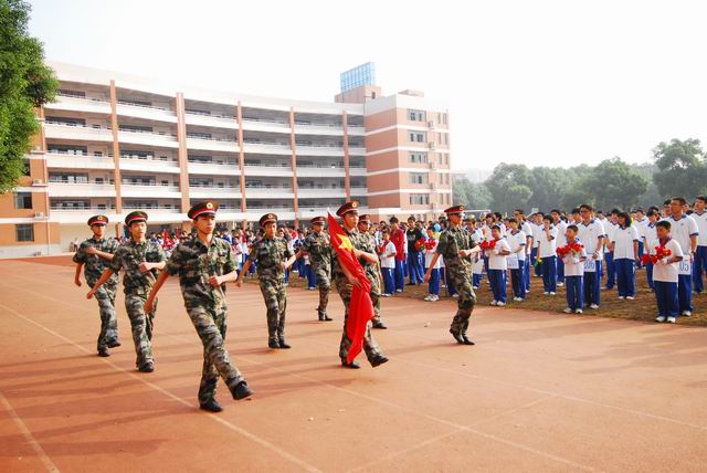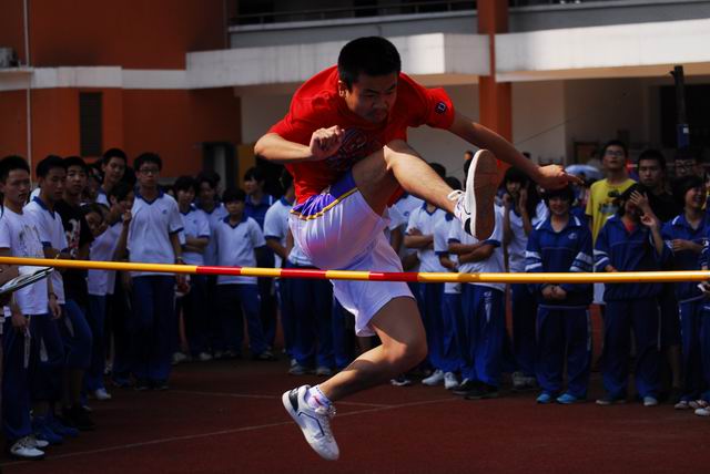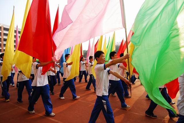 在庄严而激昂的音乐声里,国旗方阵的同学昂首挺胸,迈着整齐的步伐,威武登场。接着,会徽队、鲜花队、彩旗队整齐而有序的走过主席台。随着播音员激动人心的介绍,同学们列着整齐的方阵,井然有序地进入场地。与去年相比,各班颇具创意,精彩升级。走过主席台时,他们喊着嘹亮的口号,亮出了本班的特色。有独具匠心的队形变换,有炫出民族风格的安塞腰鼓。五彩缤纷的气球、凌空飞舞的彩带、靓丽的服饰、震撼的声威,给全场的观众带来一场精彩纷呈的视听盛宴。