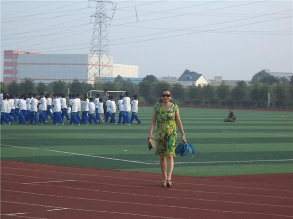 而作为七年级的年级组长,张丽老师是此次军训的主心骨,大小事务都得操心。他时而驻足观看同学们的军训情况,时而与带训的老师、教官简单交流,了解情况,时而要处理学生的突发状况。一个“忙”字是张老师这几天的最好写照。