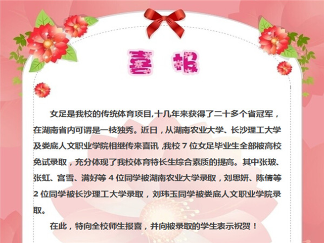 喜报:我校2015年女足毕业生全部被高校免试录取