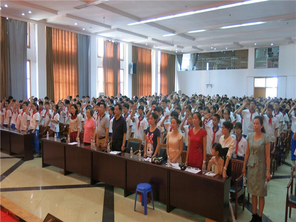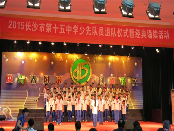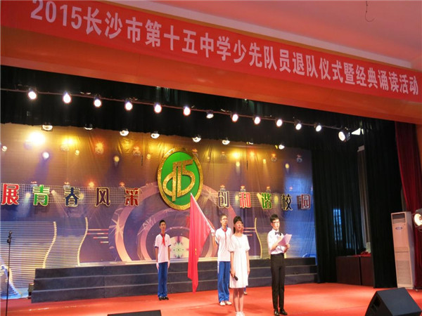 本网讯(通讯员 胡海波 杨鑫) 六月是童年的摇篮,是童年的故乡;六月有童年的沃土,有童年的太阳。6月1日上午10:30,我校初一500余名学生在科学馆五楼隆重举行了“20156163银河退队仪式暨“庆六一”经典诵读活动”。党委书记刘世军、纪委书记罗莺莺、关协主席黎旦安、教育处主任肖永贵、教科室主任王莉娟、教育处副主任昌海峰、团委副书记胡海波、团委少先队辅导员李欢老师、年级组长张丽、初一各班班主任、部分老师、部分家长以及初一年级的全体学生参加了此次活动。