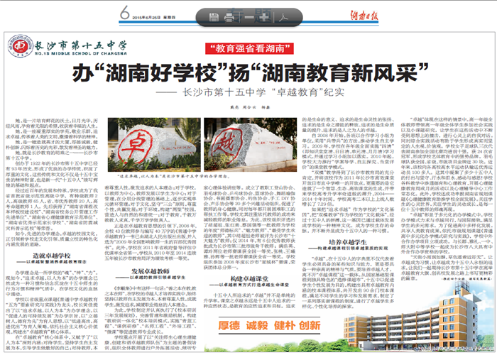 湖南日报专题报道我校“卓越教育”纪实