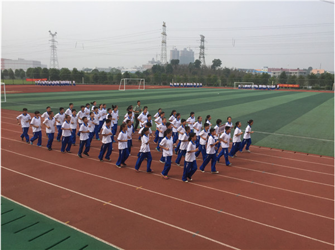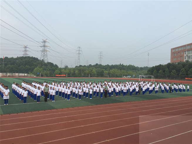 在总教官刘督导的口令下,来自8个班级旳表演方队就稍息、立正、跨立、停止间转法、蹲下与起立、敬礼与礼毕等队列内容进行表演,紧接着同学们在气势磅礴的音乐下同学们进行军歌方队展示,整齐的动作,步伐坚定,精神抖擞,展现出了初一新生的积极、阳光、认真和专注,展示完毕后,赢得了领导和到场家长的肯定和阵阵掌声