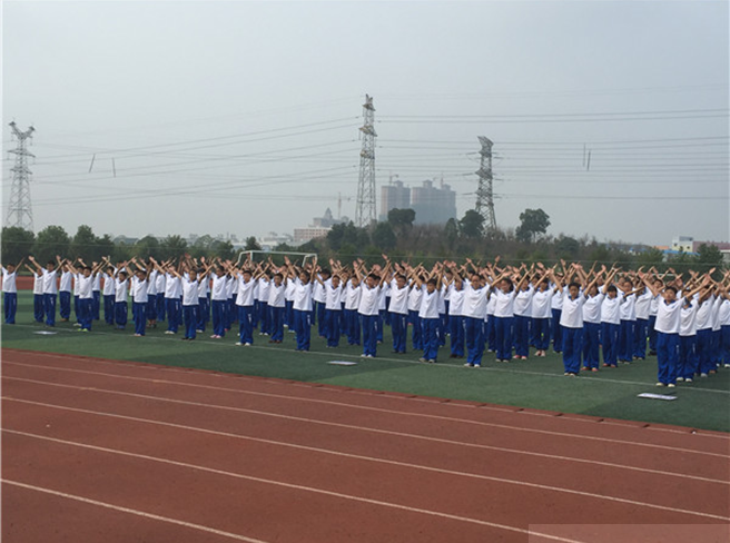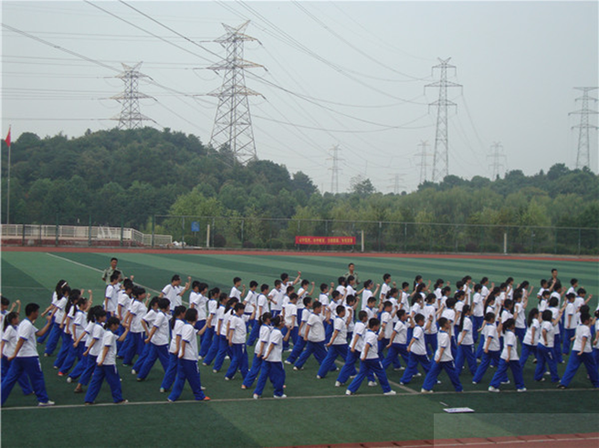 随着洪亮的口号“风中雄鹰,水中蛟龙,山中猛虎,林中猎豹,十五中学,我的骄傲”,让人眼前一亮的军体拳展示开始了。“杀!”嘹亮的吼声震彻全场,飒爽的英姿,初一学生们的气势震撼了现场所有的人,令全场掌声雷动,惊叹不已!