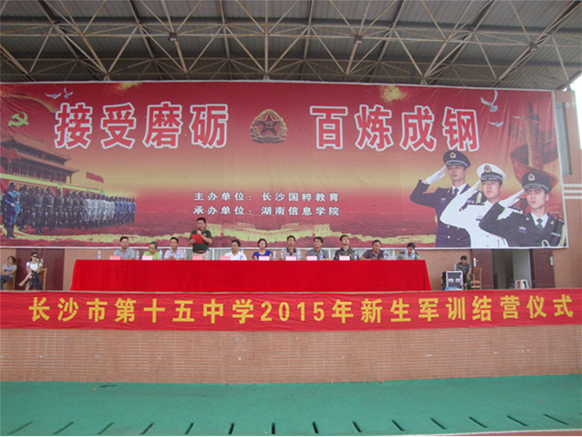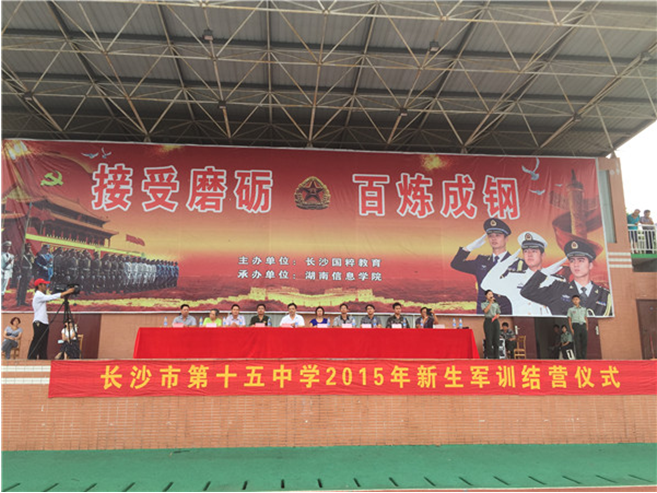 学军人风采、强自身素质。8月29日上午8:30,6163银河2015级初一新生军训成果汇报表演暨军训结营仪式在湖南信息学院体育场隆重举行。
