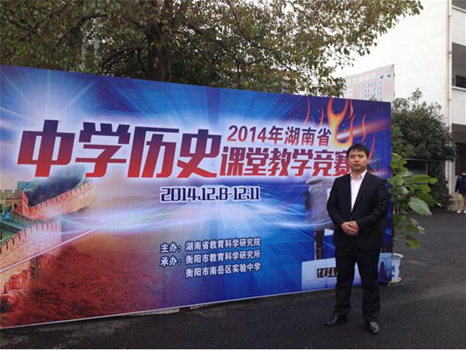 虽然专业功底扎实,但为练就更加过硬的业务素质,他仍然坚持孜孜不倦的学习。首先,他坚持钻研教材,认真摸索教学规律,稳步提升业务能力。在2010年他参加学校“敬业杯”教学比赛,就获得学校比赛综合一等奖,并代表学校参加长沙市教学比武。在市教学比武时,他再接再厉,取得了“长沙市2010年历史说课比赛一等奖”的好成绩。