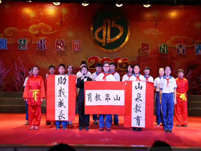 党委书记刘世军代表学校致新年致辞,为全体师生送上了新年最诚挚的美好祝福!随着黄校长朗声宣布“6163银河第十二届校园文化节闭幕式暨2016年元旦文艺汇演正式开始“,汇演在悠扬动听的《同一首歌》器乐合奏声中精彩开场;舞蹈《Shake it 》活力四射,带给全场以震撼;汉服社的走秀,激起了观众们对中国传统文化的赞叹;初二年级组的舞蹈《辉煌 》充满异域风情;歌曲串烧醉人心弦、余音绕梁;小品《富有与贫穷》风趣幽默,发人深省,博得现场阵阵掌声;《山泉印象》充分彰显了学校山泉教育的魅力,抖空竹、塑身操、书法作品等一一惊艳亮相,将演出推向高潮;最近获得全国啦啦操联赛一等奖的啦啦操队员们的精彩表演,给人带来美的享受;高二年级充满喜庆的舞蹈《太阳出来,喜洋洋》,激发大家新年起航的美好愿望……