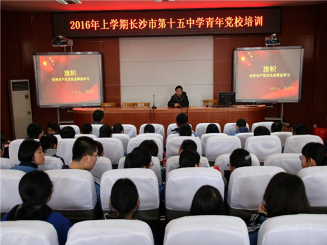 春光灿烂,万物复苏。2016年3月10日中午12:40,团委在科学馆二楼报告厅组织了本学期青年党校的第一课:旗帜——优秀党员事迹学习。莅临的领导和老师有党委陆洲书记、团委胡海波书记、初一党支部邱静华老师、少先队辅导员赵翠连老师。