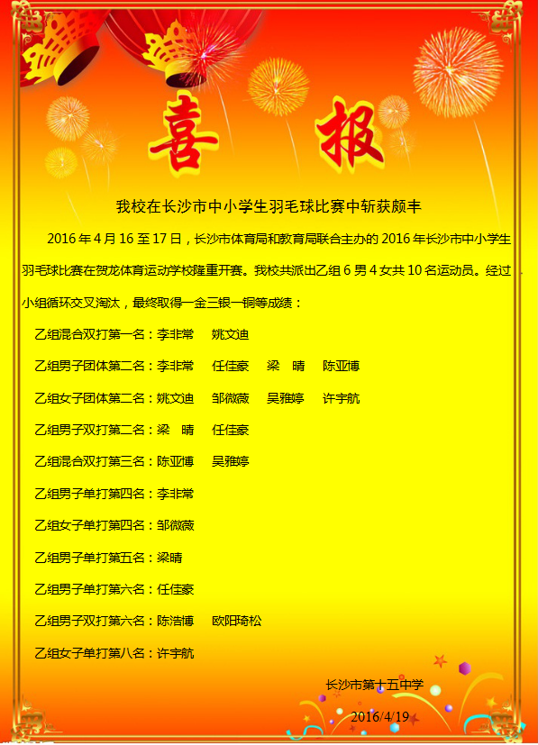 喜报:我校在长沙市中小学生羽毛球比赛中斩获颇丰