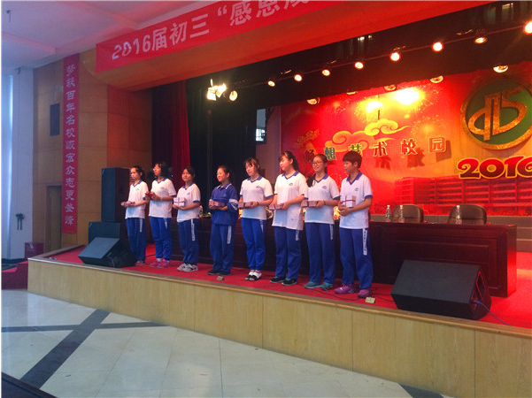 典礼在庄严的国歌声中开始。教务处李主任带领学生回顾了三年中的一些精彩瞬间, 宣读了单碧天等30位优秀毕业生名单。教师代表李欢老师向同学们毕业表示祝贺和祝愿,C1305班颜筱薇同学的家长对学校领导、老师付出的辛劳表示感谢,对孩子们的毕业表示祝贺,并提出要再接再励,在人生的新起点上再创辉煌。学生代表易佳成同学激情澎湃的道出了对母校的感激和依恋,对同学和老师的不舍,表示一定会继续努力,再创佳绩。