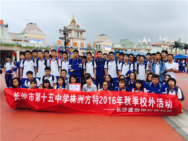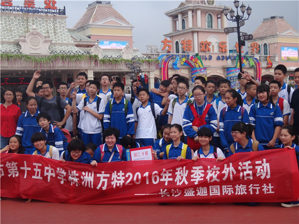 9月28日上午8点,全体师生从学校出发前往目的地。秋风习习,西风萧瑟,但是这寒意没有影响到同学们的热情,师生同乐,一路上充满欢声笑语。在株洲方特,所有同学分班级依次进入方特欢乐世界,在游乐期间,到处是十五中同学们的身影,三五成群,嬉戏打闹。火流星、大摆锤、维苏威火山、海螺湾、飞越极限、探空飞梭、飓风飞椅……处处充斥着同学们的惊呼声、笑声,老师们也是趁着难得的闲暇时光放松一下,让人不禁忘却了这秋风带来的阵阵凉意。