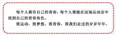 黄佳校长朗声宣布第12届体育节暨第63届田径运动会正式开始。在五彩高飞的气球和热烈的欢呼声中,本次校运会赛程也正式拉开序幕。让我们在为期两天的校运动会赛场上超越梦想、放飞青春、燃烧激情、追求卓越!