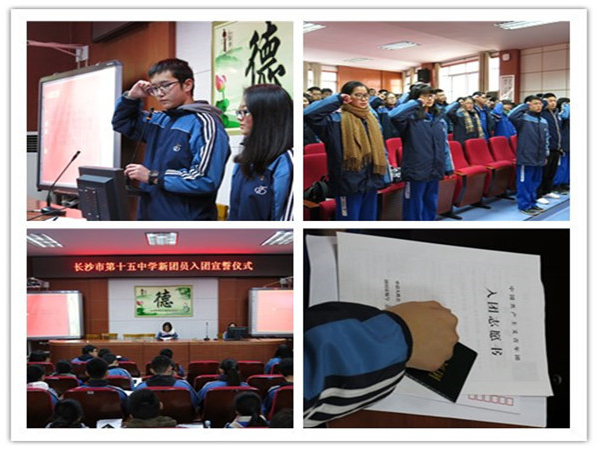 在欢快的歌声中,仪式正式开始。全体师生起立,高唱中国共青团团歌。随后,杨书记宣读关于批准新团员入团的决定,并为新团员代表佩戴团徽。组织部部长陈扬带领新团员宣读入团誓词,全体同学握紧拳头,举起右手,庄严宣誓,此时,同学们的脸上洋溢着骄傲和自豪。新团员代表肖晓同学发言,她表示时刻牢记今天的入团宣誓,严格要求自己,好好学习,积极向上,为自己的人生迈好每一步,希望通过自己的不断努力,成长为社会的有用之才。
