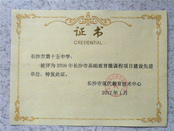 我校荣获2016年长沙市基础教育微课程项目建设先进单位
