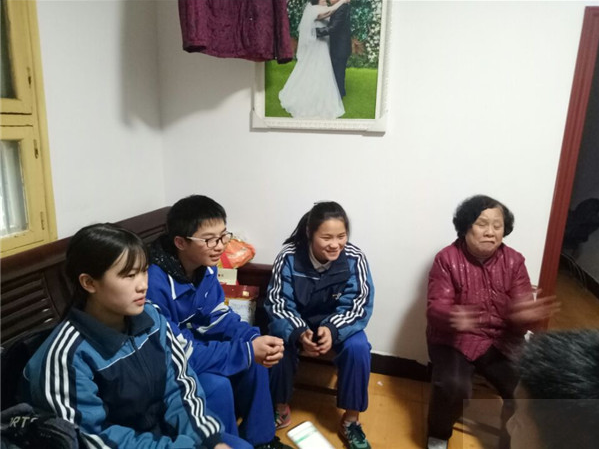 随着社会的进步和发展,越来越多的年轻人选择外出打工创业,这自然也造成了“空巢老人”这一特殊群体的存在,为了弘扬中华民族敬老爱老的传统美德,为他们晚年寂寞的精神世界献上一份关爱,3月10日我校高一8班、9班共计14位雷锋志愿者在谢莉老师和杨蹈老师的带领下来到侯家塘社区苏娭毑和曹娭毑家开展爱心帮扶活动。