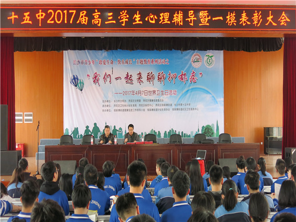 你觉得自己1分钟能拍掌多少下?”“你觉得天上会掉馅饼吗?”“怎样才能接到馅饼?”,一个个脑洞大开的问题,惹得长沙市十五中高三的全体同学们时而深思,时而捧腹大笑。 4月13日,我校举行高考考前心理辅导讲座,邀请市实验中学心理辅导中心主任、国家二级心理咨询师毛巍嶷老师主讲。教育处肖永贵主任、高三年级组长李建军、高三全体师生参加了此次活动。