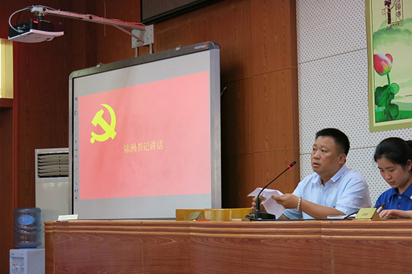 会议在《没有共产党就没有新中国》的歌声中拉开帷幕。紧接着,陆洲书记发表重要讲话,他强调:中国现今的时代主题是实现两个100年,青年朋友也应顺应主题,投身祖国建设,共青团是党和祖国的好助手,而身为共青团员的同学们应该用自己的热情来报效祖国。
