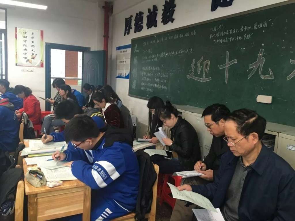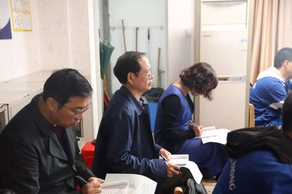 专家们听课非常扎实细致,笔记本上密密麻麻写满了记录。他们甚至坐到了课桌之间,不时瞥见同学们用笔在书上不停地圈记。