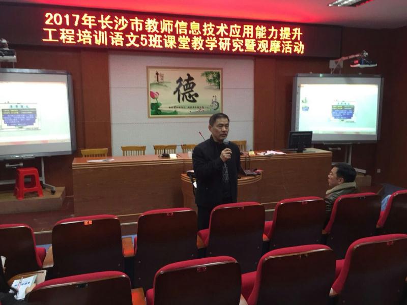 11月30日下午,长沙市教师信息技术应用能力提升工程培训语文5班课堂教学研究暨观摩活动在十五中校科学馆二楼报告厅举行,来自全市各中学的五十多名语文教师参加了这次活动。